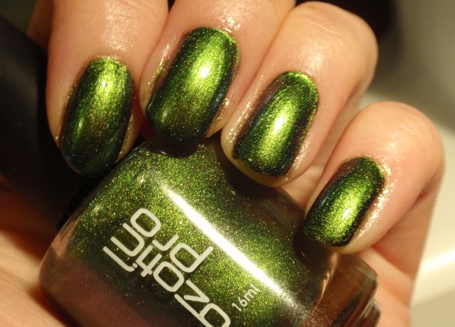 Yet another fantastic Ozotic Pro polish! This is a multichromatic glitter that shifts from green to gold to copper to purple to red. Just marvellous! I got comments on this polish from men who usually don’t even notice my nails, it was that special. I just wish it was mine… (I borrowed this from a friend.)
