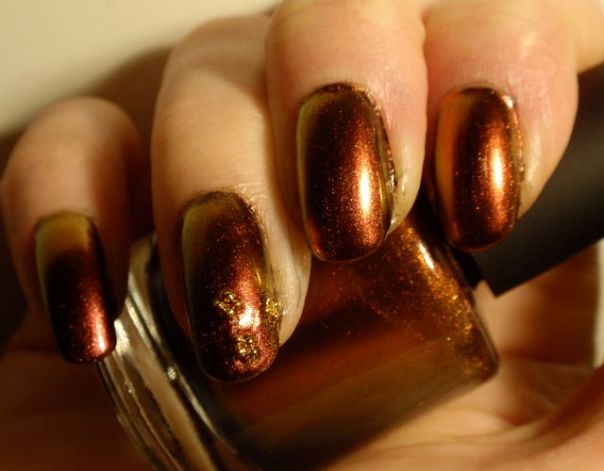 Åh, det här lacket önskar jag att jag ägde! Tyvärr var jag inte smart nog att köpa det själv, men hade turen att Karin, som hade beställt det när vi beställde lack tillsammans från piCture pOlish var i Peru när paketet kom och lät mig testa hennes lack medan hon var bortrest, så jag har i alla fall fått ha det på naglarna i några dagar. Det är grymt snyggt! Det är ett multikromatiskt glitterlack som skiftar från grönt till guld till koppar till purpur till rött. Helt fascinerande att ha på fingrarna. Det här lacket fick jag till och med kommentarer på från män som aldrig brukar lägga märke till mina knasiga nagellack, så speciellt är det! Måste köpa det i nästa beställning…
