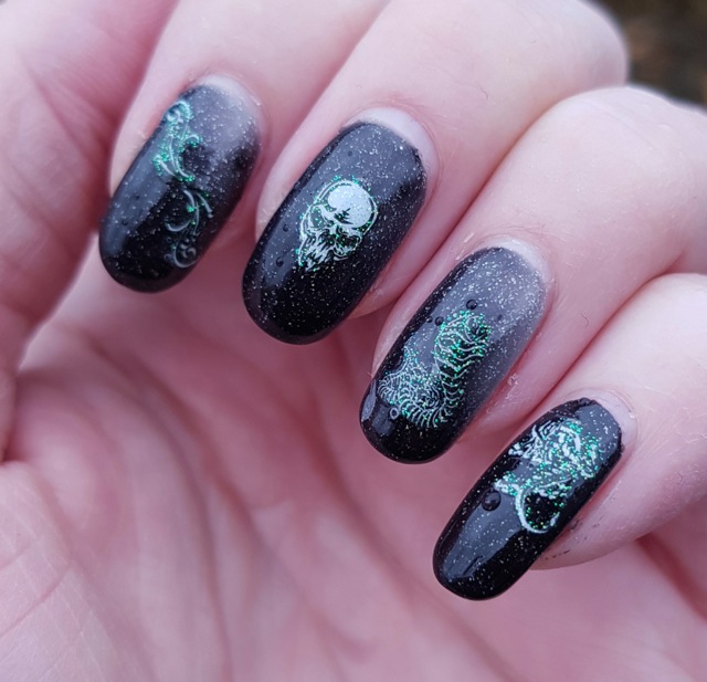 The decals are from ProNails and I have bought them from Edgy Polish, which is closed now, sadly. I thought the decals were quite suitable for a Halloween mani. 🙂