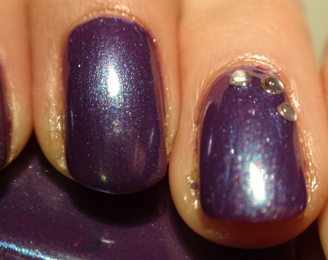 Så fick jag äntligen lägga vantarna på en flaska med Scrangies eget lack som hon tagit fram tillsammans med Rescue Beauty Lounge! Jag har varit grymt sugen på den ända sedan jag såg de första bilderna, och tack vare Nailmail äger jag nu en flaska! Det uppfyller faktiskt mina förväntningar också, det är ett otroligt läckert lack! Grundfärgen är lila, men det skiftar i blått och grönaktigt och är mycket unikt. Dessutom var det underbart att lacka med och täckte på två lager.