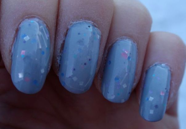 Tyvärr hade jag svårt att få tid att fota det här i bra ljus, så bilderna är tagna när det börjar bli mörkt. Lacket ser blåare ut än det är i verkligheten, det är egentligen ganska rent grått. Jag beklagar också de extremt vintertorra händerna… Det är svårt att göra något åt så här års.