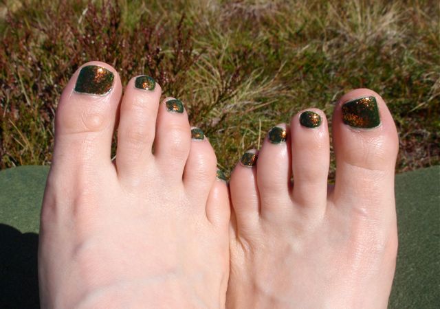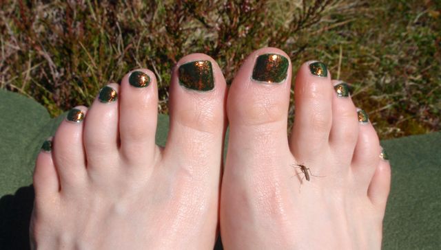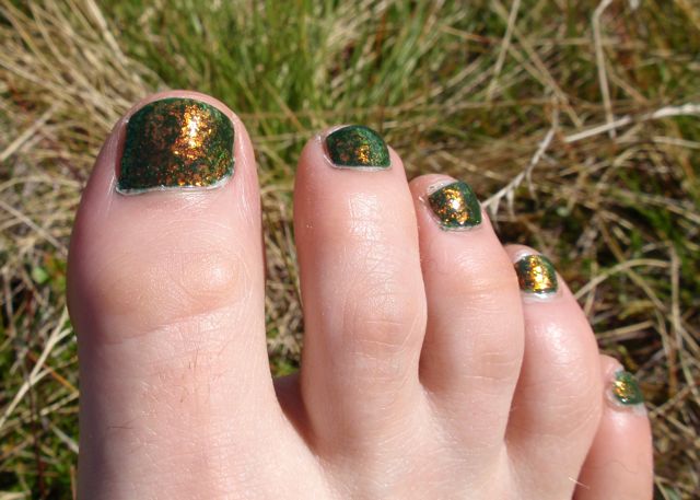 Det blir lite gamla bilder för att fylla upp när jag inte har något nytt att visa. Det här är Rescue Beauty Lounge Recycle med guldspräcklig transparent nagelfolie över. Lite av en favorit faktiskt. Lacket är också, som alla RBL-lack jag har provat, jättetrevligt! Lätt att applicera och täcker bra. Synd bara att det är svindyrt och svårt att få tag på i Sverige. Jag köpte mitt via nagellacksprenumerationstjänsten Nailmail – ett fantastiskt sätt att få tag på skojiga lack som annars inte säljs här i landet! (Och en stor anledning till att min nagellackssamling har tredubblats det senaste året…)