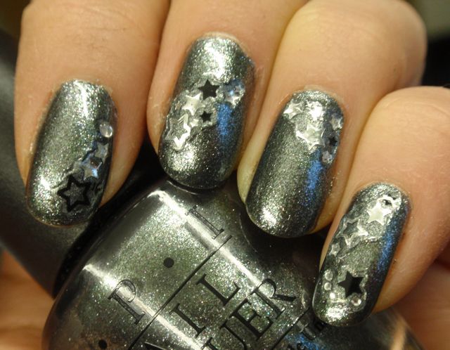 Lucerne-tainly Look Marvelous är ett riktigt fint skimrigt gråsilvrigt lack. Det har lite skimmer i grönturkost och kanske lite andra färger också, det är mycket diskret men ger lite extra djup till lacket. (Skimret syns bäst på bilden av vänster tumme.) I skugga blir det svartsilvrigt. Det var helt ok att applicera, jag gillar OPIs breda borste. Det täckte hyggligt på två lager, men var lite flammigt så jag tog tre. Ett riktigt trevligt lack, måste jag säga!