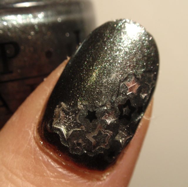 Det blev en lite enklare variant den här gången, OPI Lucerne-tainly Look Marvelous från deras Swiss collection med nagelklistermärken som jag köpte på Claire’s när jag var i Skottland för ett par veckor sedan. (Min totala souvenirskörd från den resan uppgick till en flaska sjysst single malt whiskey, en flaska exklusiv supersmarrig single malt, ett nagellack och några kartor nagelklistermärken. Man måste ju prioritera det viktigaste! :-))