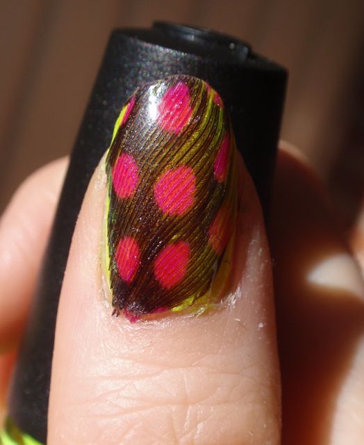 This week’s theme for Nail Art Sunday was a given: Easter. I have long been wanting to try a feather manicure, so I took the opportunity to make something of the feathers I had laying around since a friend’s bachelorette party. As a base I used the most yellow polish I have, China Glaze Sun-Kissed. The feathers took some time to apply, but I kind of like the result.