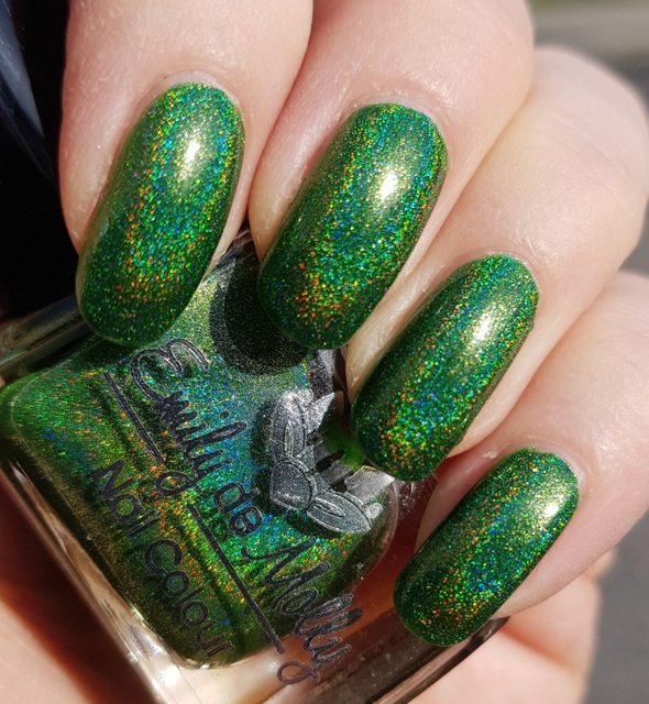 Holofredag hos Sminkan och Emma igen! Den här gången deltar jag med en grön skönhet från Emily de Molly, Erratic Behaviour. Jättevacker grön färg och ordentliga regnbågar – what’s not to love?