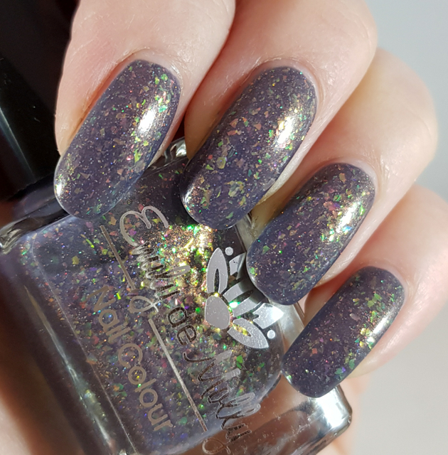 Det var rätt länge sedan jag fick några mainstreamlack som pressprover nu, vilket har haft fördelen att jag i lugn och ro kunnat hänge mig åt de härliga indielacken som jag har fått hem från Karin, min nagellackslangare i Staterna. Ett av dem är The Grey Silence från Emily de Molly, som är ett väldigt vackert grått flakielack. Basen är lite lilatonad, men huvudsakligen grå, och flakiesarnan är iridicerande och skiftar i grönt, rosa och orange. Det har också lite kopparskimmer och holografiskt mikroskimmer. Så vackert!