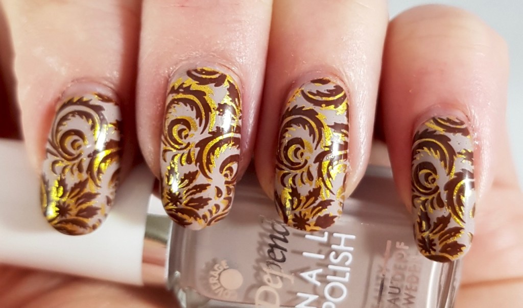 Stämplingslack: guldlack från Born Pretty Store och brunt lack från Beauty Big Bang.