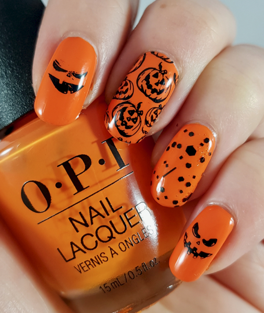 Halloween mani with OPI Summer Lovin’ Having a Blast