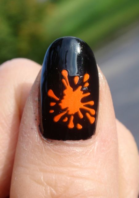 The base for the mani is three coats of the yellow Shocking Orange, and the application was actually pretty good for a yellow neon. It would have needed another coat for full coverage, but it still covered really well for a light neon. And it was quite bright enough on its own and didn’t need a white base coat.