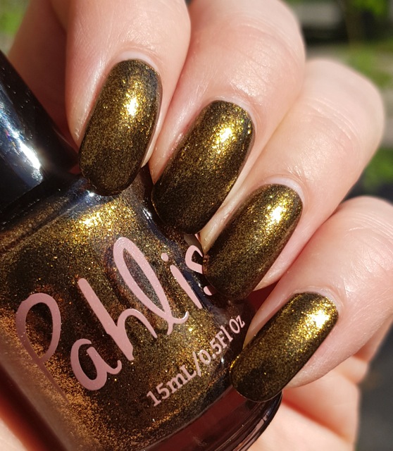Jag försöker att låta bli att köpa saker bara för att de är döpta efter något jag gillar, men i det här fallet kombineras ett av mina favoritkreatur från Fantastic Beasts med ett riktigt fint lack, så det fick glida ner i min varukorg. Niffler är ett mörkt brunt lack med guldflakes. Det är ett ganska enkelt koncept, men jag tycker det är ett väldigt fint lack. Jag bar två lager, och det var rätt tjockt att måla med, men ändå hanterligt.