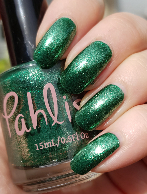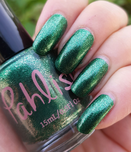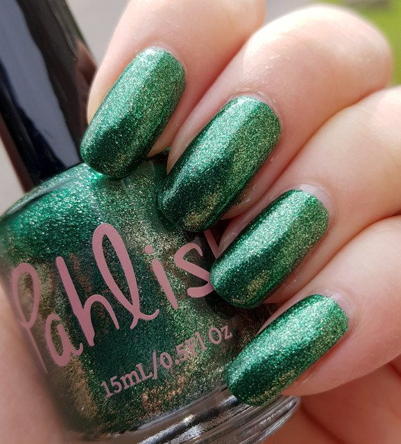 Pahlish har kommit med ett gäng lack med Harry Potter/Fantastic Beasts-tema, och jag köpte på mig två av dem i höstas. Det första jag bar är Grindelwald, ett fint gråtonat lila med små guldflakes. Den här typen av lack är trevliga att bära emellanåt, tycker jag, som en omväxling till alla mörka och klara färger jag annars har. Det här är snyggt och lite speciellt utan att vara för påträngande eller tråkigt. Jag gillar det!