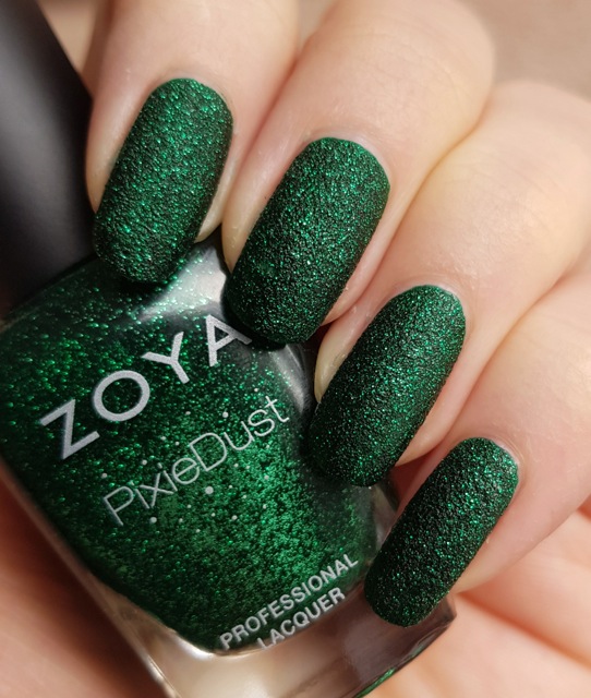 In English: Zoya Elphie is a textured polish from the PixieDust series that I bought in a blog sale a long time ago and then forgot among my untrieds for way too long. It is beautifully emerald green – my favourite colour!