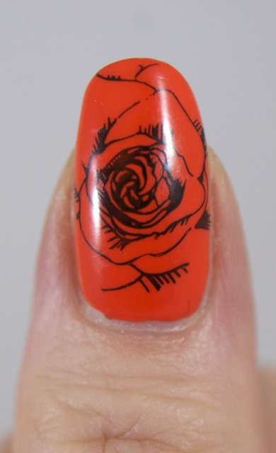 The roses are from the first plate in the fifth plate collection from ÜberChic Beauty and I stamped with a black stamping polish from Depend.