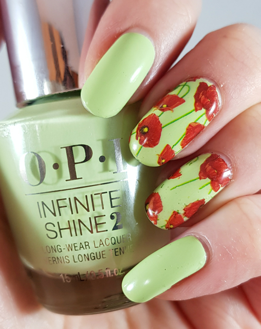 Jag fick det här som ett Infinite Shine, alltså från OPIs gelhybridserie, så det är inte säkert att formulan är lika som de vanliga lacken. Jag hoppas att det inte är det, för det här var inte så kul att lacka med. Det var svårt att få jämnt, vallade sig och jämnade inte ut sig mellan lagren. Jag hade tre lager bara för att jämna ut det eftersom det andra lagret var ganska ojämnt. Jag använde över- och underlacket som hör till Infinte Shinelacken (också pressprover), men det hjälpte inte. Förmodligen kan man använda vanliga över- och underlack också. Det brukar gå bra, men nu hade jag ändå Infinite Shinelacken. De ger en väldigt fin glans, men torkar långsammare än de överlack jag brukar använda. Jag tycker inte att det här håller längre än vanliga lack heller, så jag tror väl ärligt talat att man lika gärna kan köra med vanligt över- och underlack. Det blir ju lite billigare.