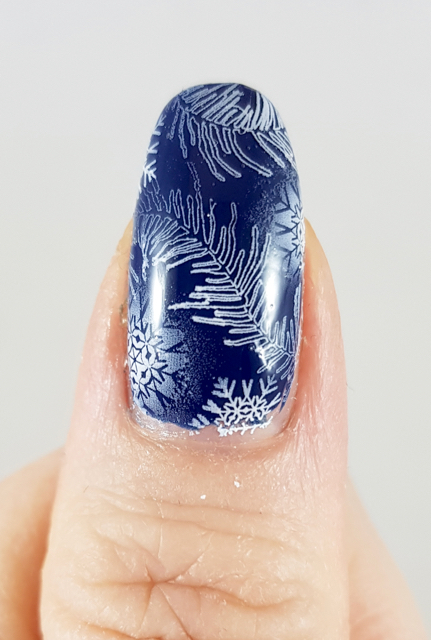 In English: We finally got some snow a couple of days ago. November has been long, dark and rainy, so the snow was really a big improvement, and I wanted to celebrate it with a snowy manicure. I reached for these water decals from Fashion Nails that I ordered from What’s Up Nails earlier this year. As a base, I wore Depend 601, a muted dark blue creme that I have gotten as a press sample from the Tokyo Street collection. The colour isn’t very unique, but it applied well and covered in two coats without a problem.