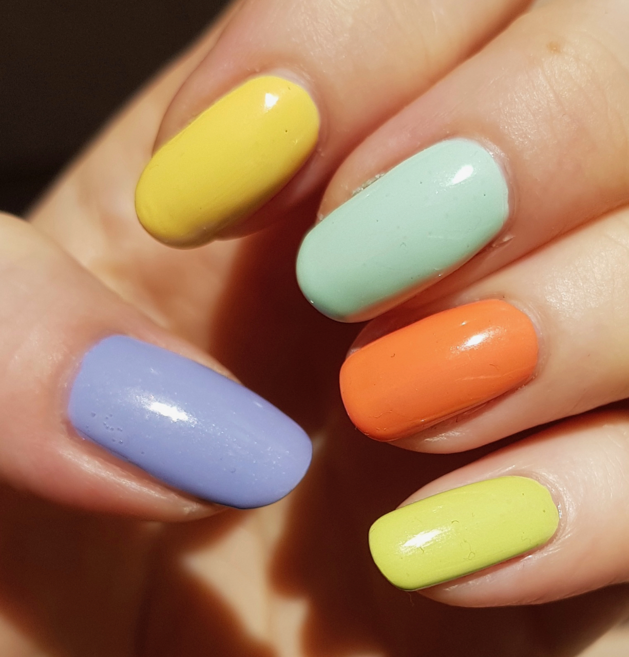 In English: This is actually the manicure I’m wearing at the moment and I am really liking it, despite it being pastel and cheerful and summery. Maybe we need cheerful, summery nails now that the world is ravaged by pandemic misery.