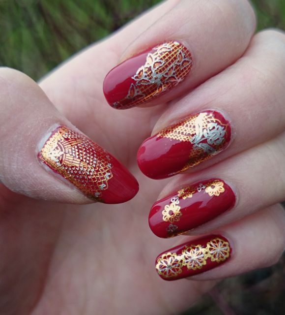 Oops! I just realized that I have forgotten to post pictures of my Christmas manicure… It could be a good idea to do that before Easter at least. 😛 I dug up an old polish – Orly Unlawful from the 2012 Christmas collection – for this year’s Christmas Eve manicure. When I wore it the last time I was a little uncomfortable in it, but it felt alright to wear it for Christmas. Or maybe I’m just more used to vampy red nails…
